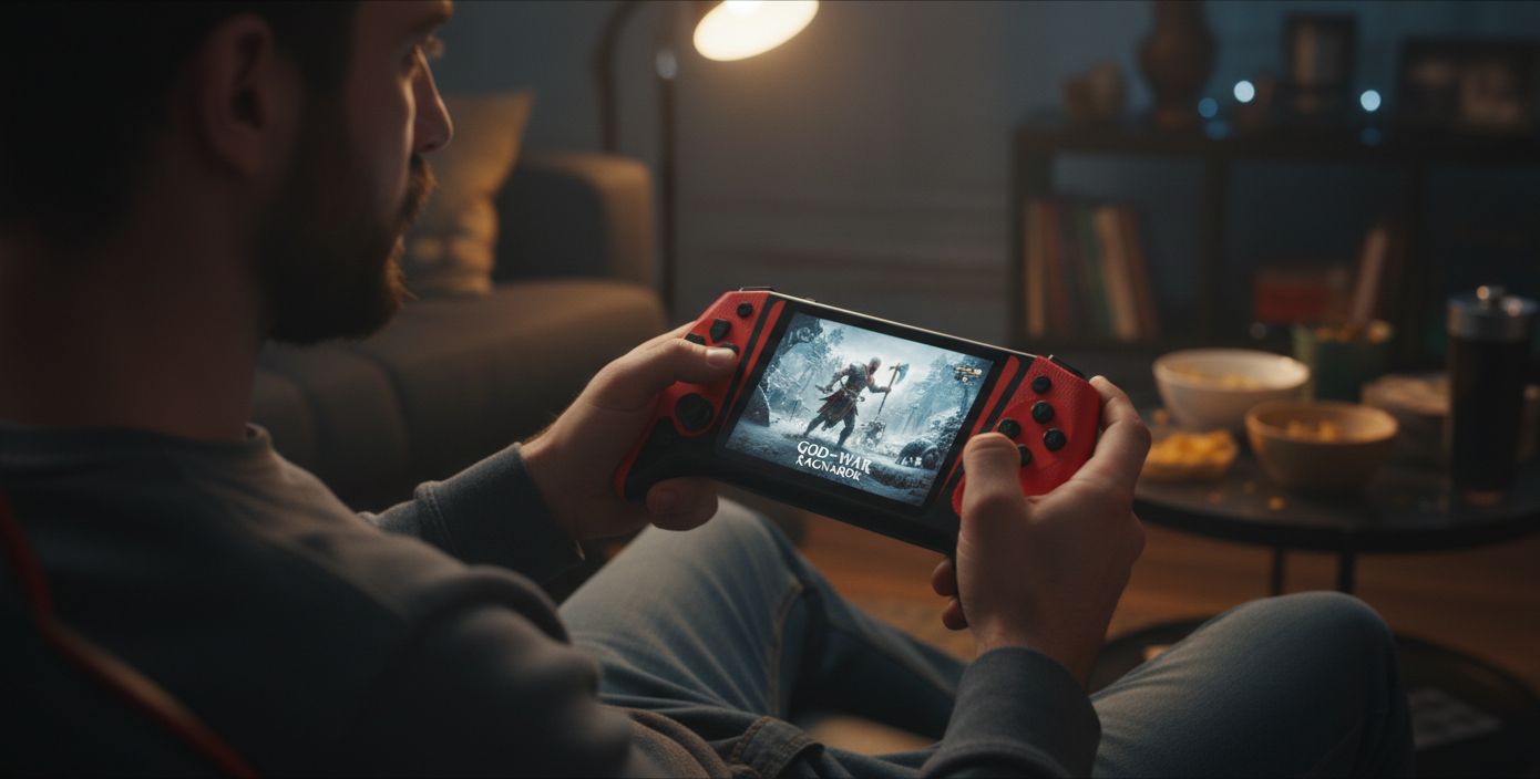 Nuestra consola presume de una pantalla de gran tamaño para una consola estándar, y destaca por su rendimiento, logrando ejecutar juegos que en otras consolas se ralentizan pero aquí corren perfectamente.